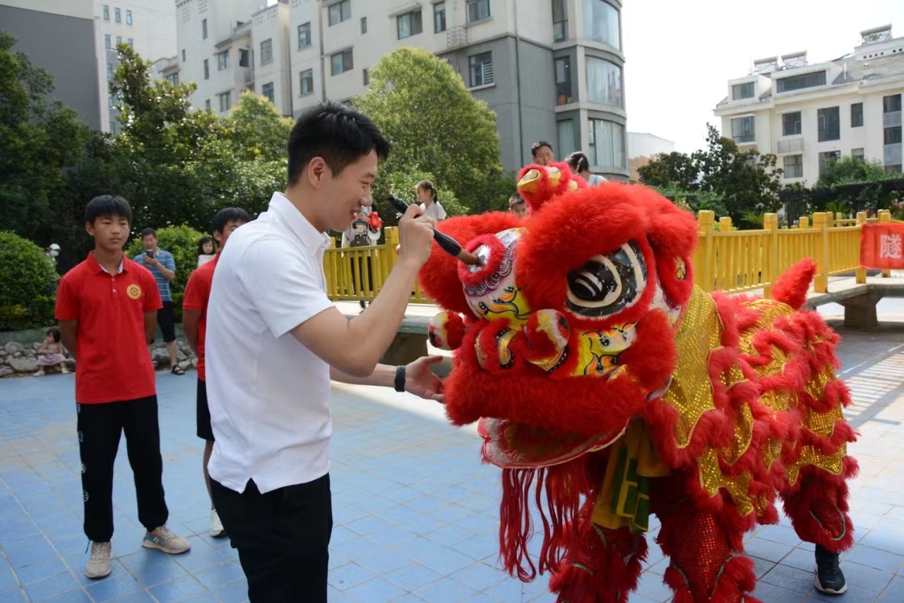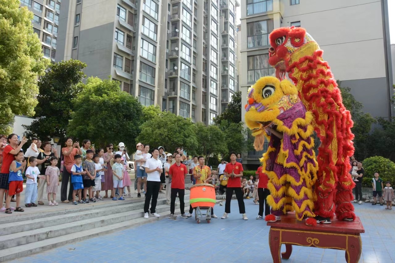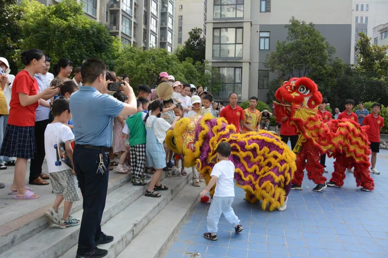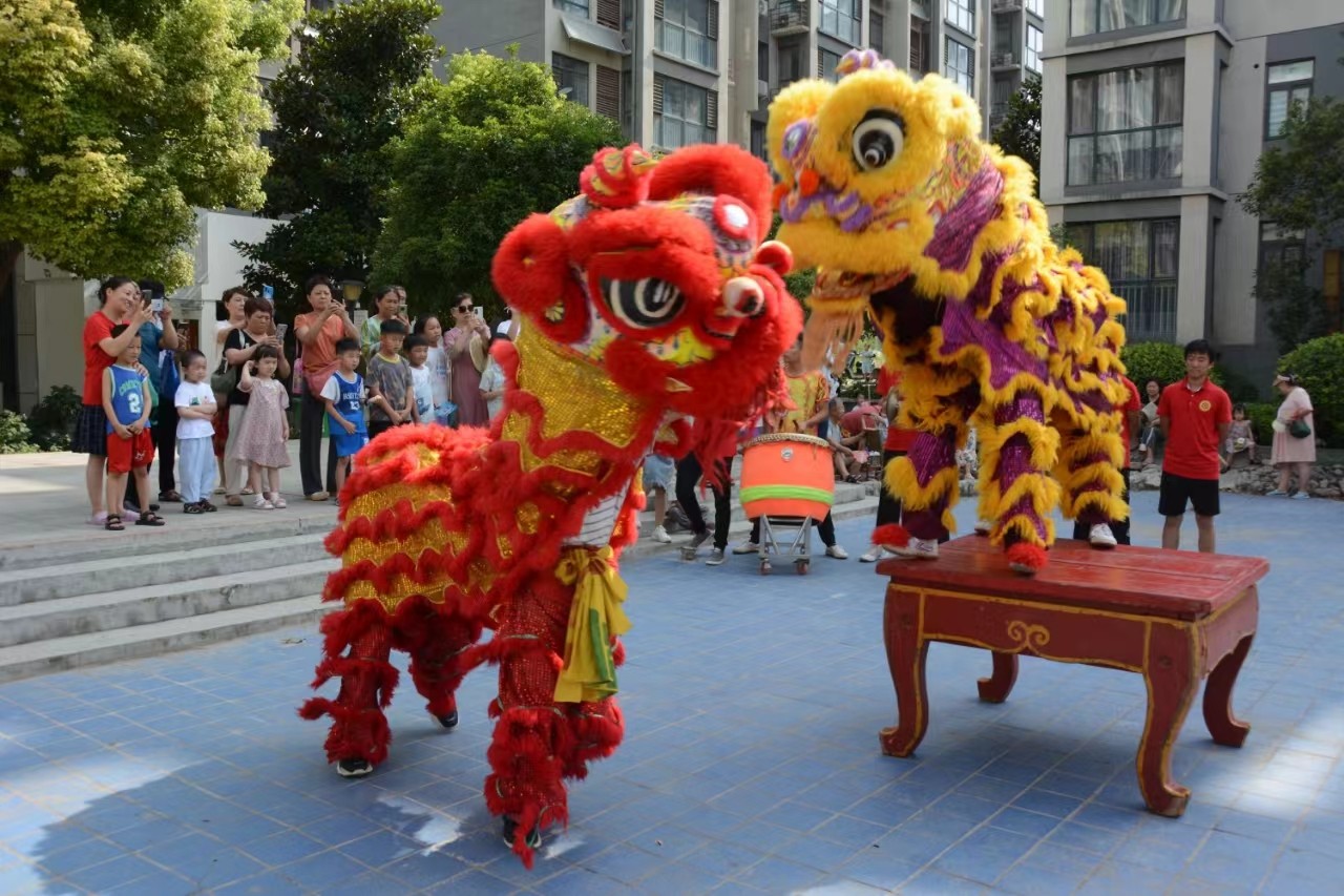 当天上午9时许,提前赶来的洛阳大里王舞狮团队的小伙们做好了充分准备,随着开场的锣鼓声,一只身披红毛和另一只身披黄毛的两只狮子大摇大摆地走入现场,红狮眼睛锐利而有力,黄狮眼睛充满温情显的相对文静。表演中两只狮子威风凛凛,而红狮身手不凡,身子腾空而起,两腿分开,那黄狮半蹲一旁,晃着尾巴头转后边,用舌头梳理着它那美丽柔软的狮毛。小伙子们丰富多彩地演绎出了狮子的勇气和力量。向观众展现了中华民族的传统文化和大里王独特的舞狮子表演。在观赏演出的同时,有大人和小孩抚摸狮头、狮毛,有人拿起毛笔在狮子的眼睛中画龙点睛 ,使社区居民在了解传统文化的同时,沉浸式体验感受舞狮带来的开心快乐。 据了解,早在2007年洛阳大里王村狮舞列入河南省首批省级非物质文化遗产名录。大里王村姓王者居多,据其家谱记载,村里舞狮子的历史至少可追溯到明代,已传承300多年,其狮舞传人已传至十八代。经过历代艺人的不断研究创新,大里王狮舞逐渐形成了自己独特的艺术风格和表演套路,以其表演大方洒脱、传神细腻、技巧娴熟和具有高难度而成为我国北派狮舞的优秀代表。新中国成立后,大里王狮舞社多次参加国家和省级民间艺术比赛并多次获得殊荣,所传教的“徒弟”遍布省内外。 如今,洛阳市有500多支舞狮队和10000多名舞狮艺人。新中国成立后,由于党和政府的关心支持,大里王狮舞以宏大的气势,壮观的场面,整齐的阵容,精湛的技艺闻名遐迩,已成为誉满华夏的中华民间艺术宝库中的一颗璀璨明珠,闪烁活跃在中原大地及祖国的大江南北。 目前,大里王狮舞能够适应各种场地演出的保留和创新节目有:高达16米、动作惊险、撼人心魂的“雄狮上老杆”;表演细腻、生动逼真的“狮子滚绣球”;还有几经创新、因地制宜、方便表演的“狮子穿越连环架”“狮子跳条几”“雄狮钻火圈”“群狮攀高凳”“狮子跳方桌”等数十个人民群众喜闻乐见的精彩节目,曾多次被中央和省市电视台及多家新闻单位报道,其中“双狮盘圈椅”的演出照片曾被《人民文学》杂志作为封面刊出。(卫 晓 陈迅柯/文图)