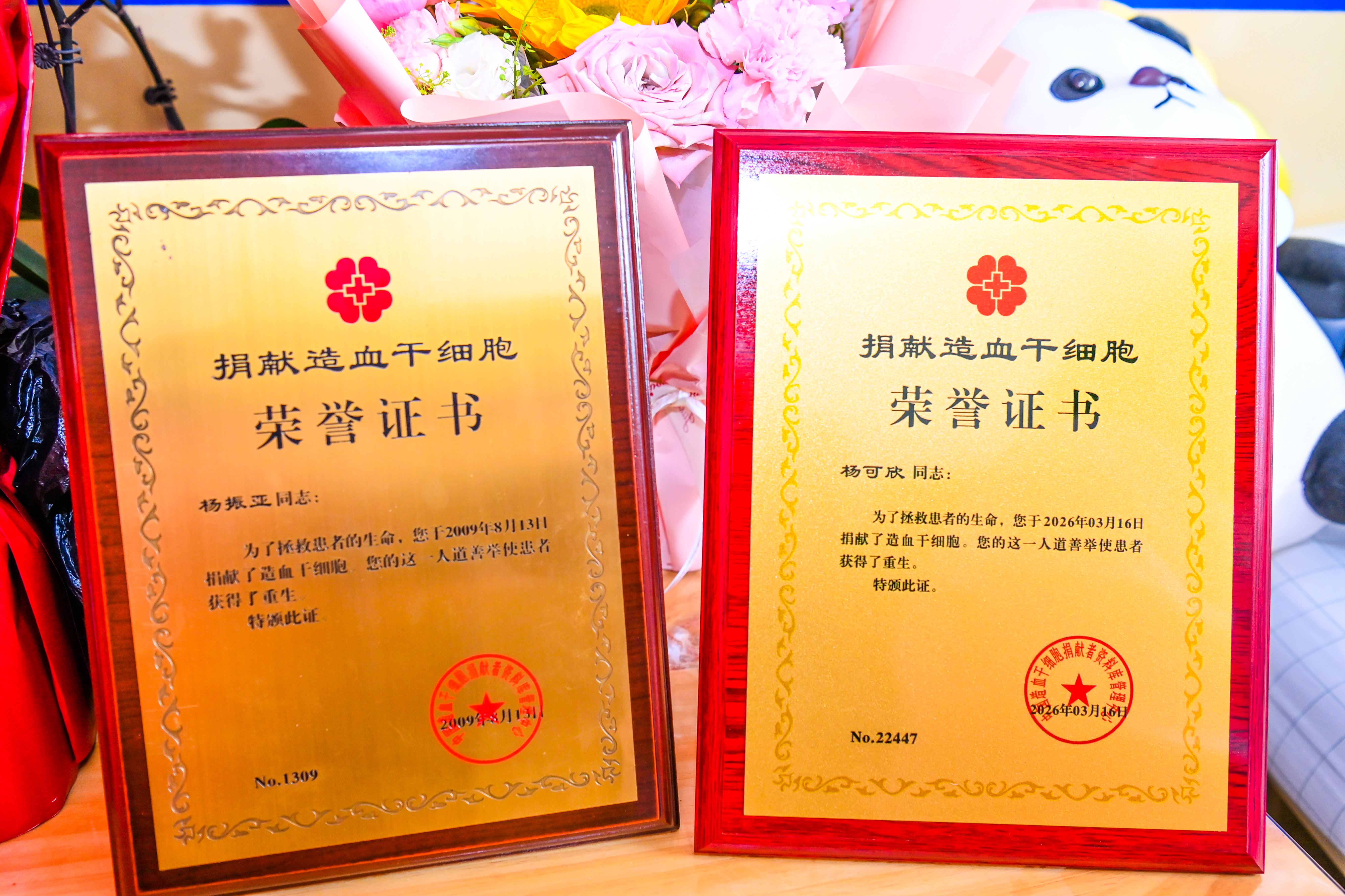 作为典型的公益家庭成长起来的“捐二代”,杨可欣的善举并非偶然。她的父亲杨振亚,已连续20年投身红十字“三献”(无偿献血、捐献造血干细胞、捐献人体器官)志愿服务,用日复一日的坚守传递着大爱。在父辈言传身教的熏陶下,奉献助人的种子早已在杨可欣心中生根发芽、开花结果。“能够延续家人的公益初心,用自己的力量挽救生命、传递温暖,是无比光荣的事。”杨可欣在捐献后说道,她希望以自己为榜样,带动更多同龄人加入爱心队伍,让大爱不断传递、让生命重获新生。
