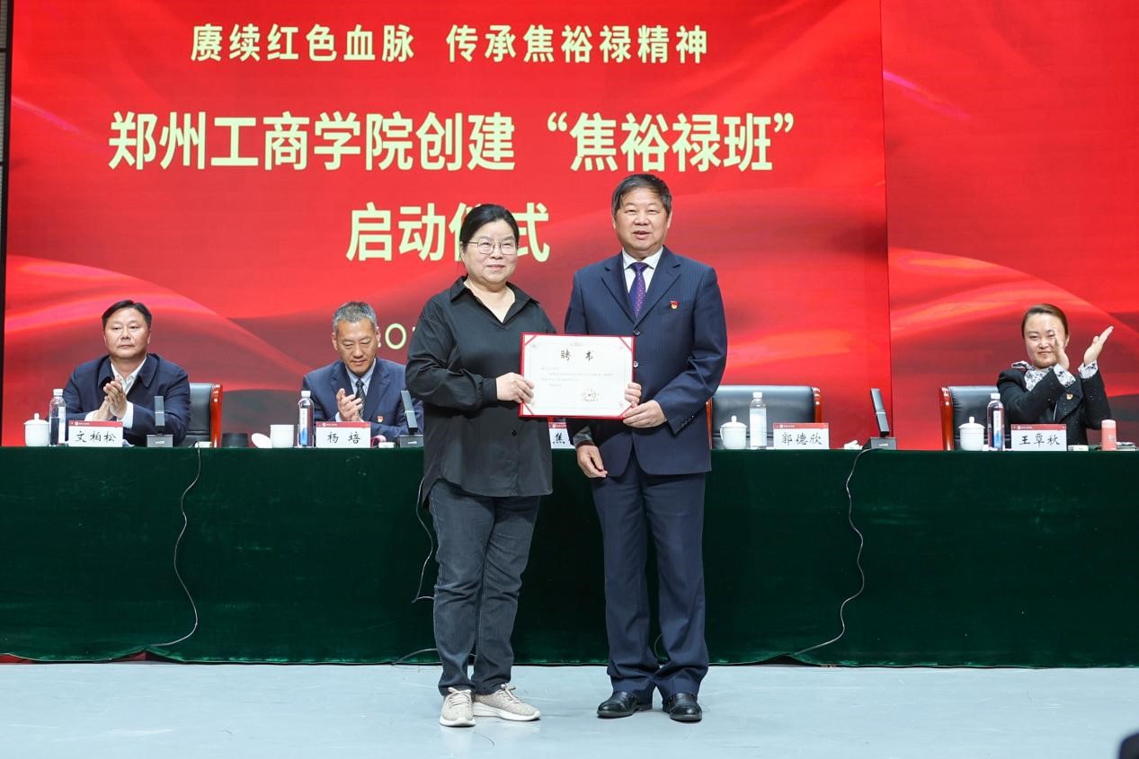 仪式现场,校长郭德欣为河南焦裕禄干部学院名誉院长焦守云颁发客座教授聘书。随后,焦守云以“我的父亲焦裕禄”为题作专题讲座。她深情讲述了父亲焦裕禄的感人故事,分析了焦裕禄精神的深刻内涵和时代价值。学生们纷纷表示,将以“焦裕禄班”为平台,努力学习、积极进取,为实现中华民族伟大复兴的中国梦贡献青春力量。