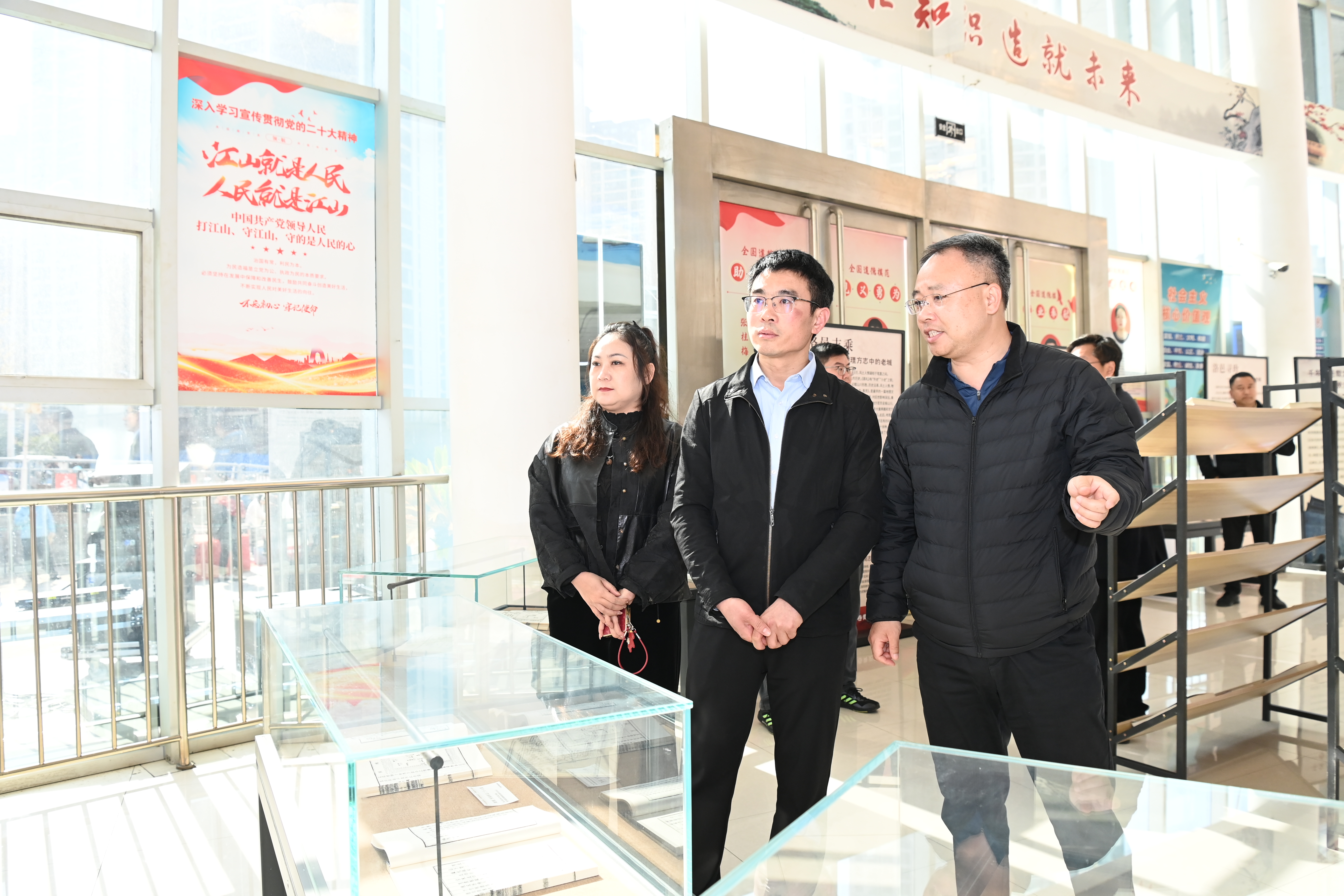 在老城区图书馆一楼大厅,“千年洛邑载文脉,一卷青史映古县”老城区地方文献展同步开展。